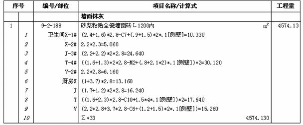 輔助計算表的設計源自電算初期,當時按5個分部分別設計了34個表(有重復表格),現發展歸納為12個表。如現在的室內裝修表中,只需輸入房間長、寬、高、扣墻和增垛長度以及洞口變量即可輸出該房間的長度、平面面積、墻面積和腳手架4項工程量計算式,如果導入定額項目則可套出12項定額的工程量。
