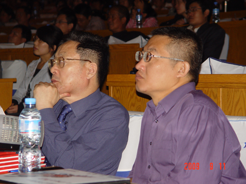 濟南市定額站王懷海副站長和英特軟件王在生董事長在認真聽取