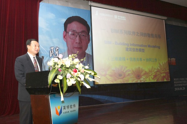 斯維爾總裁彭明在做《BIM的發(fā)展與全國(guó)百校BIM大賽》的演講