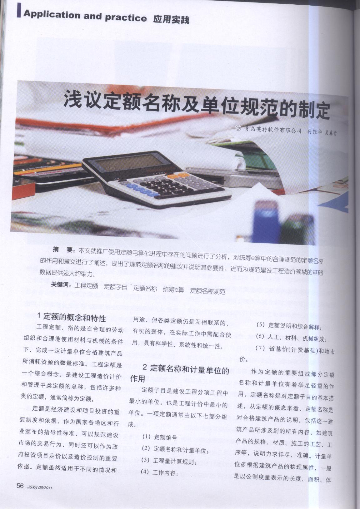 近期,青島英特軟件有限公司付銀華、吳春雷的論文《淺議定額名稱及單位規范的制定》的論文于《中國建設信息》5月下中發表。