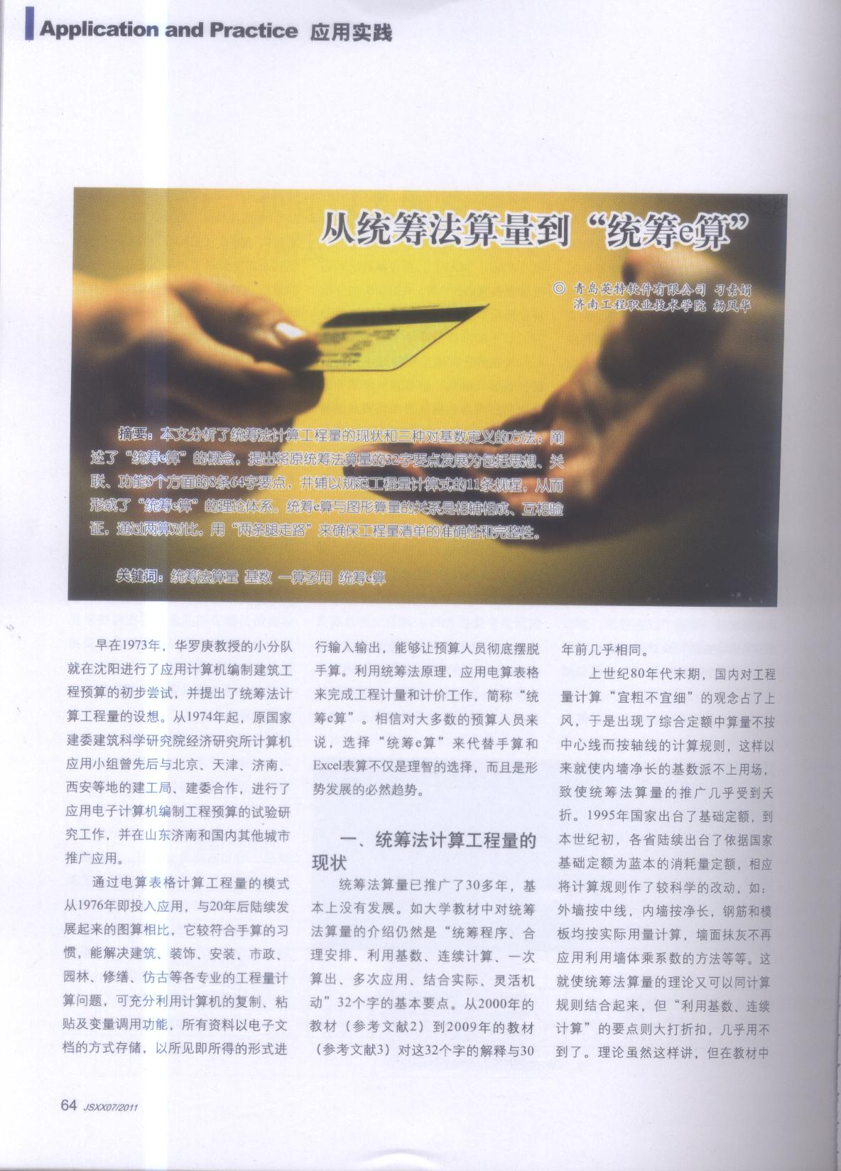 近期,青島英特軟件有限公司刁素娟工程師的論文《從統籌法算量到“統籌e算”》的論文于《中國建設信息》7月下中發表。