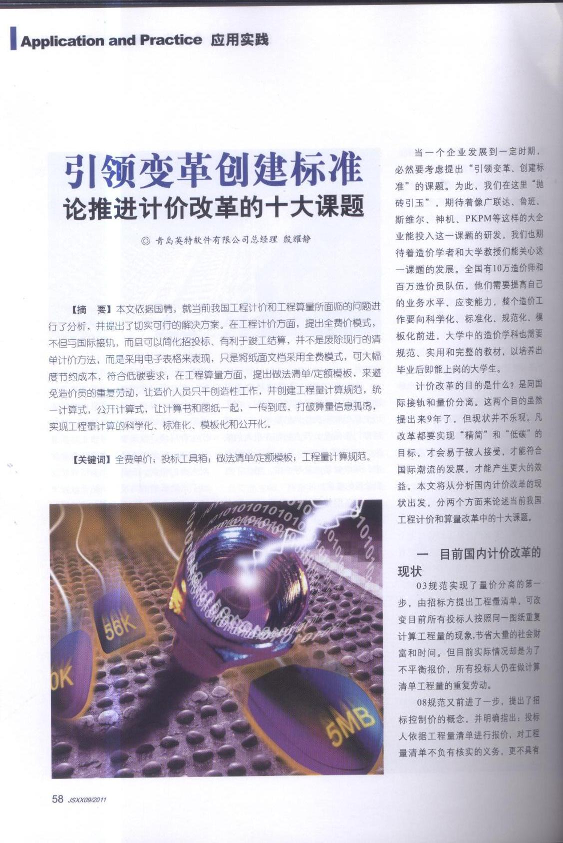 近期,青島英特軟件有限公司殷耀靜總經(jīng)理的論文《引領(lǐng)變革創(chuàng)建標(biāo)準(zhǔn) 論推進(jìn)計(jì)價(jià)改革的十大課題》的論文于《中國(guó)建設(shè)信息》9月下中發(fā)表。