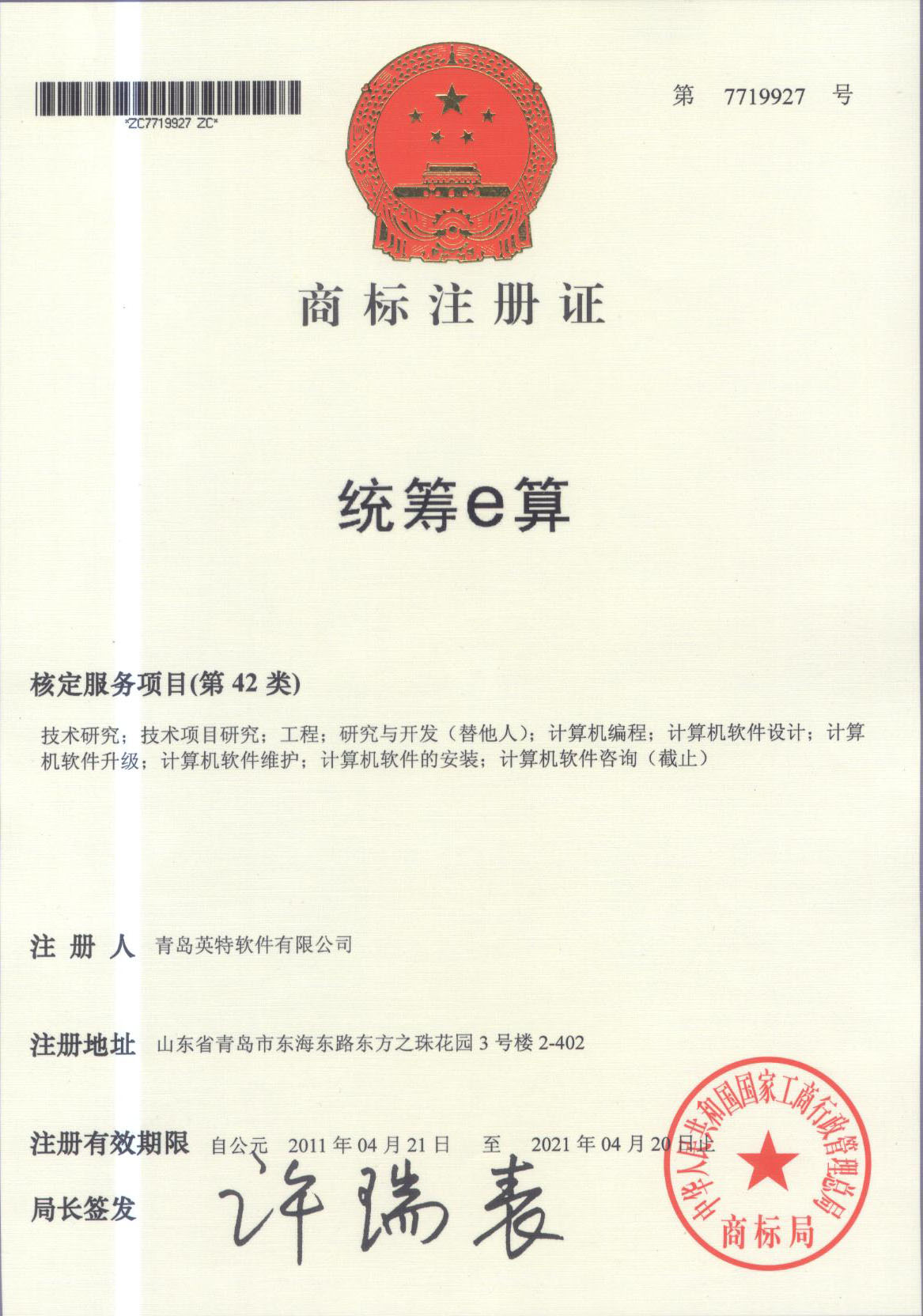 熱烈祝賀“統(tǒng)籌e算”商標(biāo)注冊成功