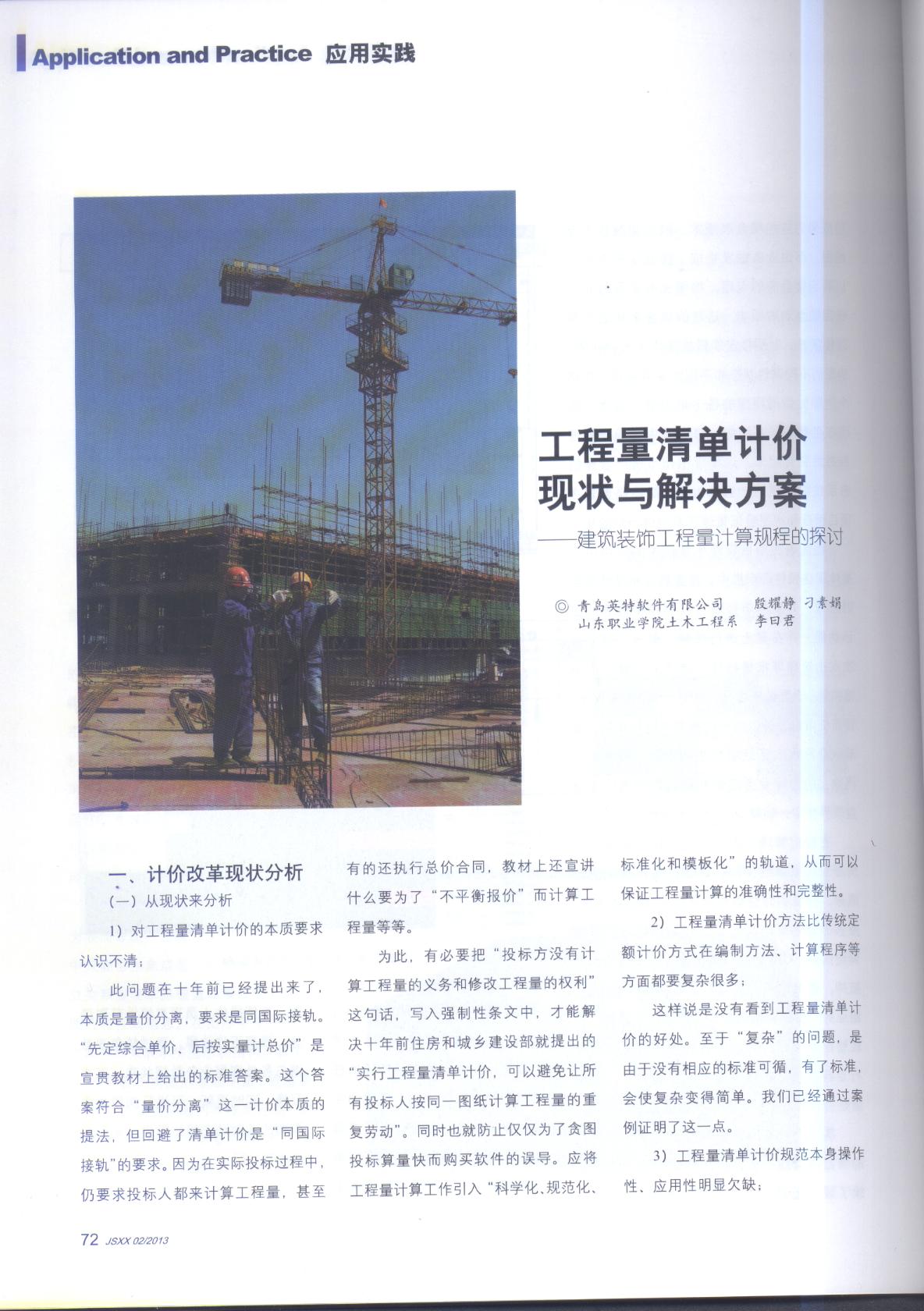 近期,青島英特軟件有限公司殷耀靜總經(jīng)理,刁素娟,山東職業(yè)學(xué)院土木工程系李曰君的論文《清單計價現(xiàn)狀與解決方案》的論文于《中國建設(shè)信息》2013年2月下中發(fā)表。