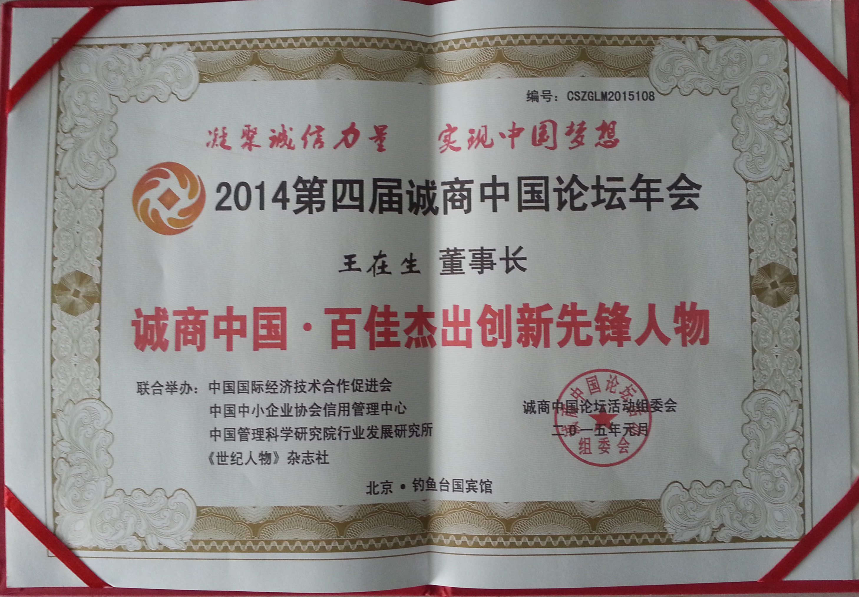 (誠(chéng)商中國(guó)·百佳杰出創(chuàng)新先鋒人物 榮譽(yù)證書)