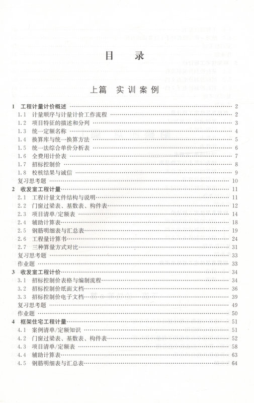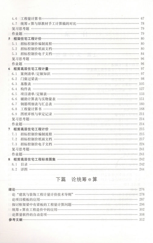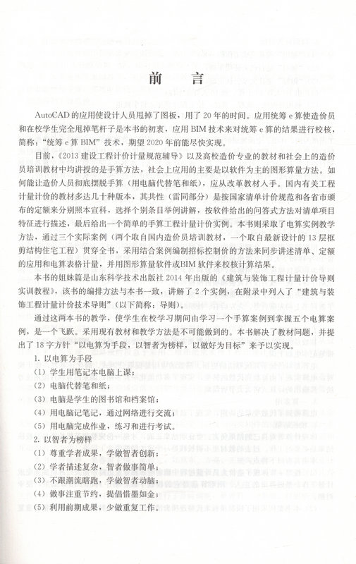 本書是通過一層砌體結構收發室、二層框架住宅和13層框剪住宅三個案例來詳細講授如何進行建筑與裝飾工程計量、計價(編制招標控制價)的教材。它與國內現有教材的區別是:用電算來替代手算;用圖算( BIM)來驗證統籌e算的 結果;并給出全工程詳細計算式和完整計價結果。本書要求學生用筆記本電腦上課,授課時間不低于240學時。本書可作為大專院校建筑與裝飾工程造價管理專業的教材;可供廣大工程造價人員學習和參考,用于解決10人算10個樣的難題。